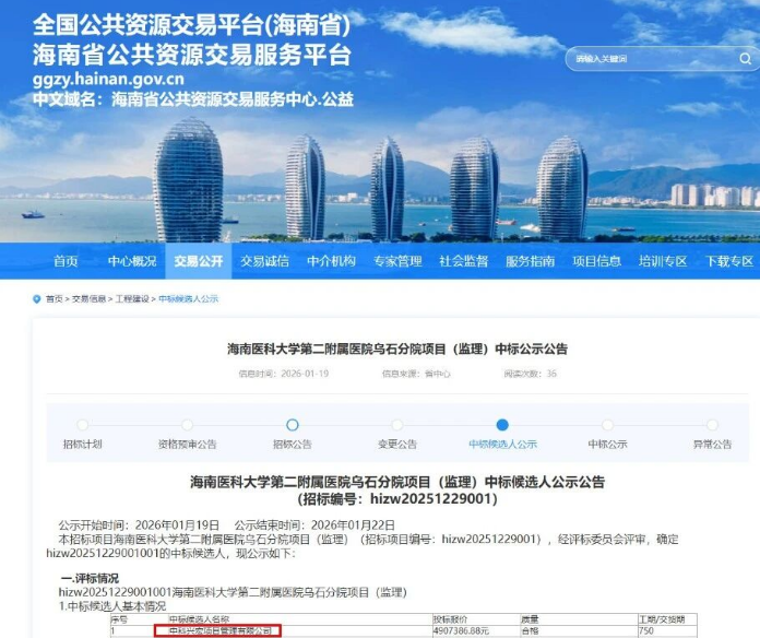 此次中标,是市场对中科兴宏专业能力的充分认可。项目成功落地于海南自贸港建设深入推进、封关运作的关键时期,更具特殊意义。 我们将以此为契机,积极投身自贸港高标准建设,恪守“公正、科学、诚信、服务”的准则,严格把控工程质量、安全、进度及投资,致力于为该项目提供全方位、高标准的监理咨询服务,全力保障将本项目打造成为品质卓越、人民满意的精品医疗工程,为夯实海南自贸港民生基础、提升区域公共服务承载力贡献兴宏力量!